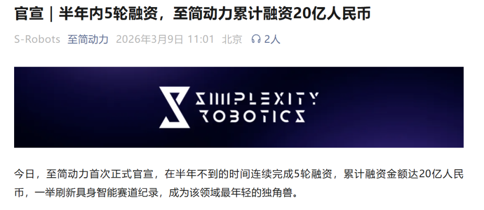 而自变量、星海图、灵初智能、至简动力,这些名字你可能陌生,但它们都是今年的“黑马”。自变量、星海图和灵初智能都在早期阶段拿到了超10亿的巨款。特别是至简动力,成立才半年,连产品都没捂热,钱就到账20亿。